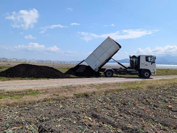 今回は諌早湾干拓のファーム中島さんに配達しました。以前からお付き合いあり、在庫減量にお手伝い頂きました。10m3で一撃24台ありがとう御座いました。これから向日葵🌻を撒いて(緑肥)その後ブロッコリー🥦を定植予定らしいです。